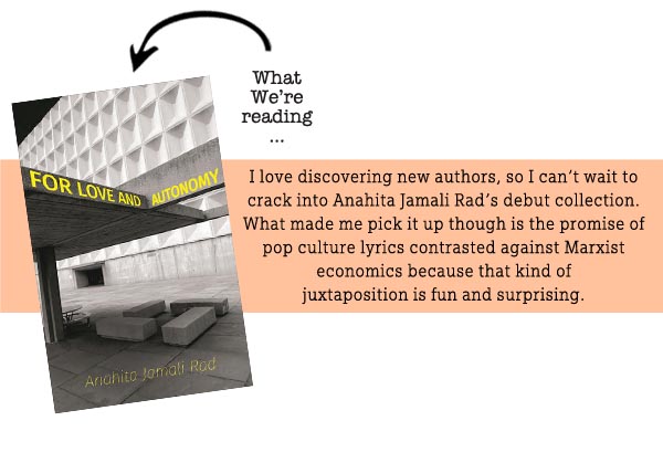 ALU Marketing Manager Mandy is reading Anahita Jamali Rad’s debut poetry collection for love and autonomypublished by Talonbooks.
