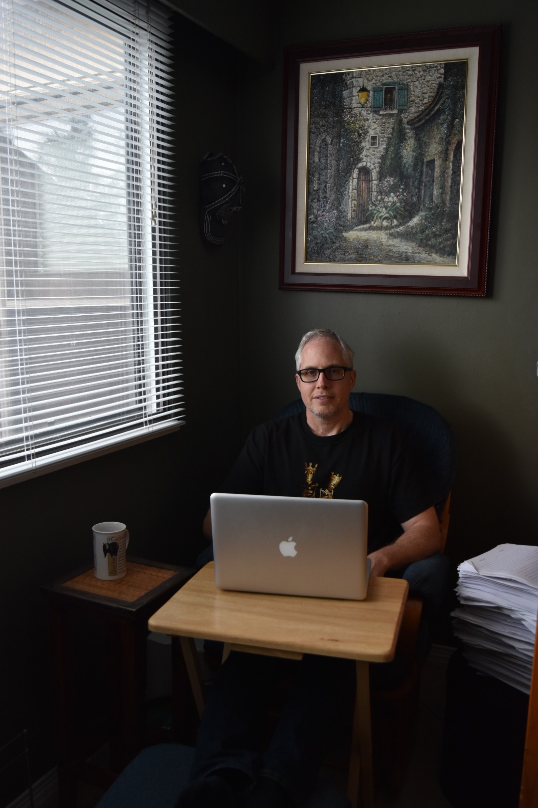 D.B. at work in his “writer’s den”